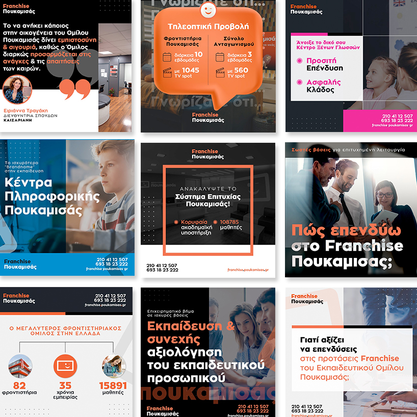 Through our social media pages, we wanted to communicate to our audience the size, prestige, and evolution of Poukamisas group. Using established statistics related to the opening of tutorial centers across Greece, the increase in the number of students over the years, as well as the trust shown by teachers, we aimed to demonstrate to potential partners that investing in the Group is a secure choice.