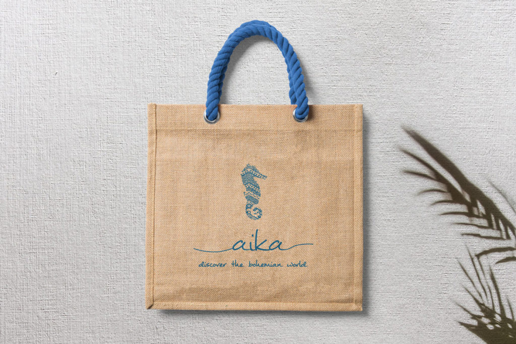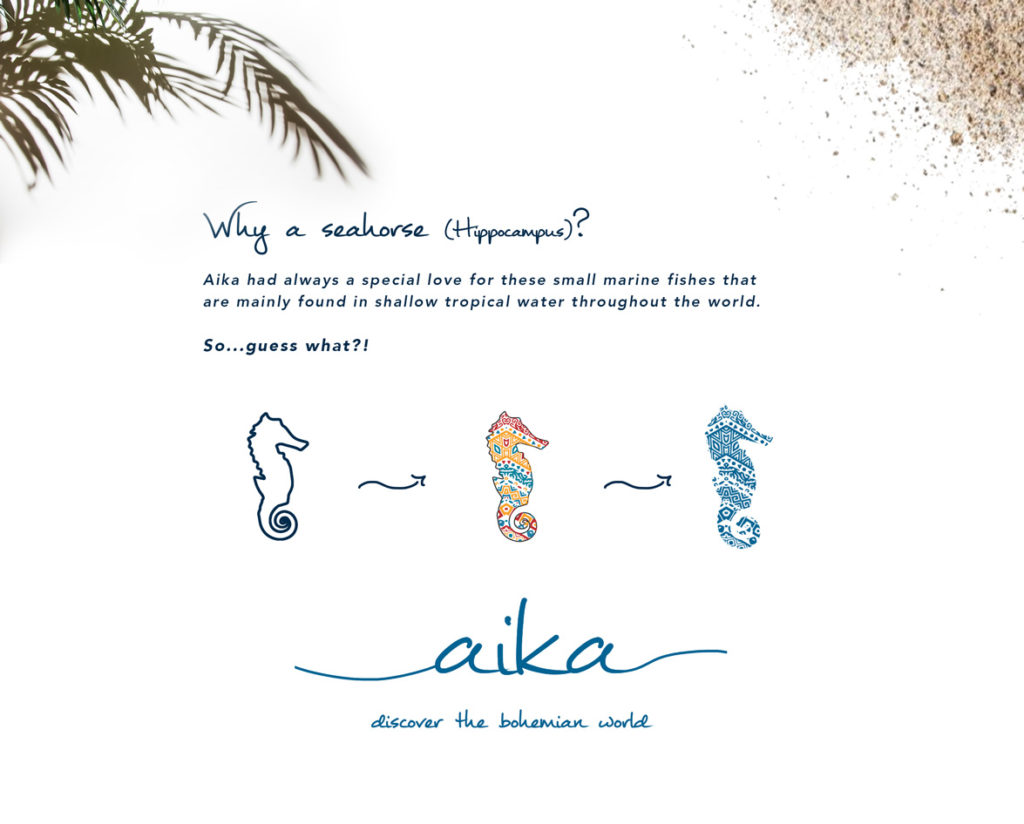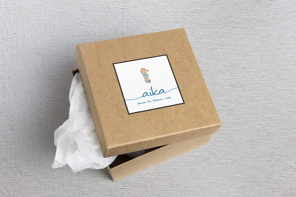 As our target was to give a strong emphasis on the hand element, I designed a handmade logo and we picked a font that reflects this attitude. The final result was to create a unique and friendly identity which represents the boho-romantic, elegant chic and alternative accessories of the Aika brand.