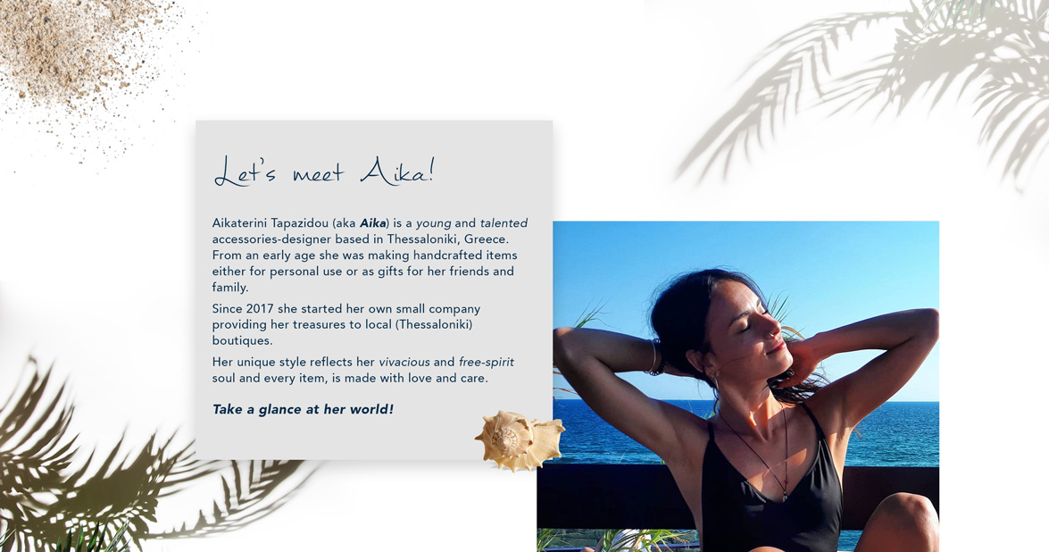 The brand “Aika” was formed when Aikaterini Tapazidou decided to set up her own company out of her passion for fashion.