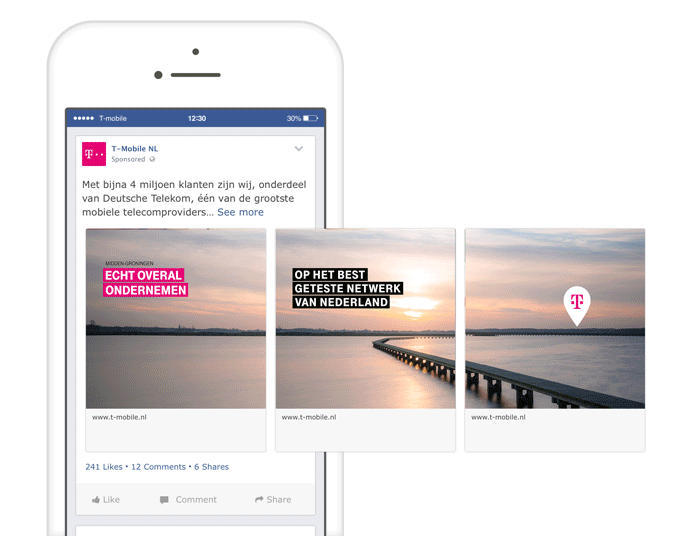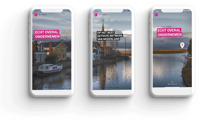 This campaign was part of the T-Mobile ‘s Business sector (Zakelijk) and we had to come up with banner sets for five different regions: Neder-Betuwe, De Fryske Marren, Midden-Groningen, Noordoostpoler, Dinkelland.