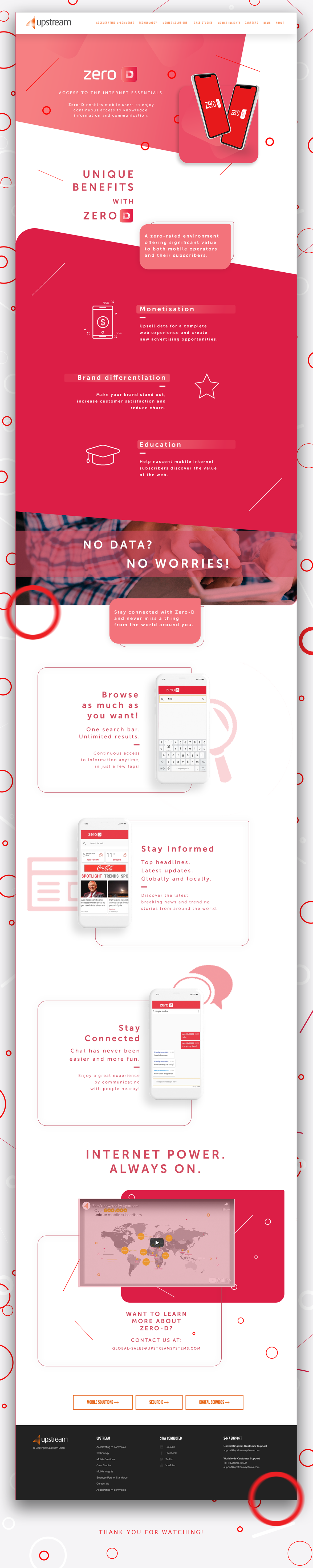 Zero D is a brand-new product for Upstream that provides mobile users with uninterrupted access to the Internet essentials (Search, News and Chat) anytime, anywhere.
